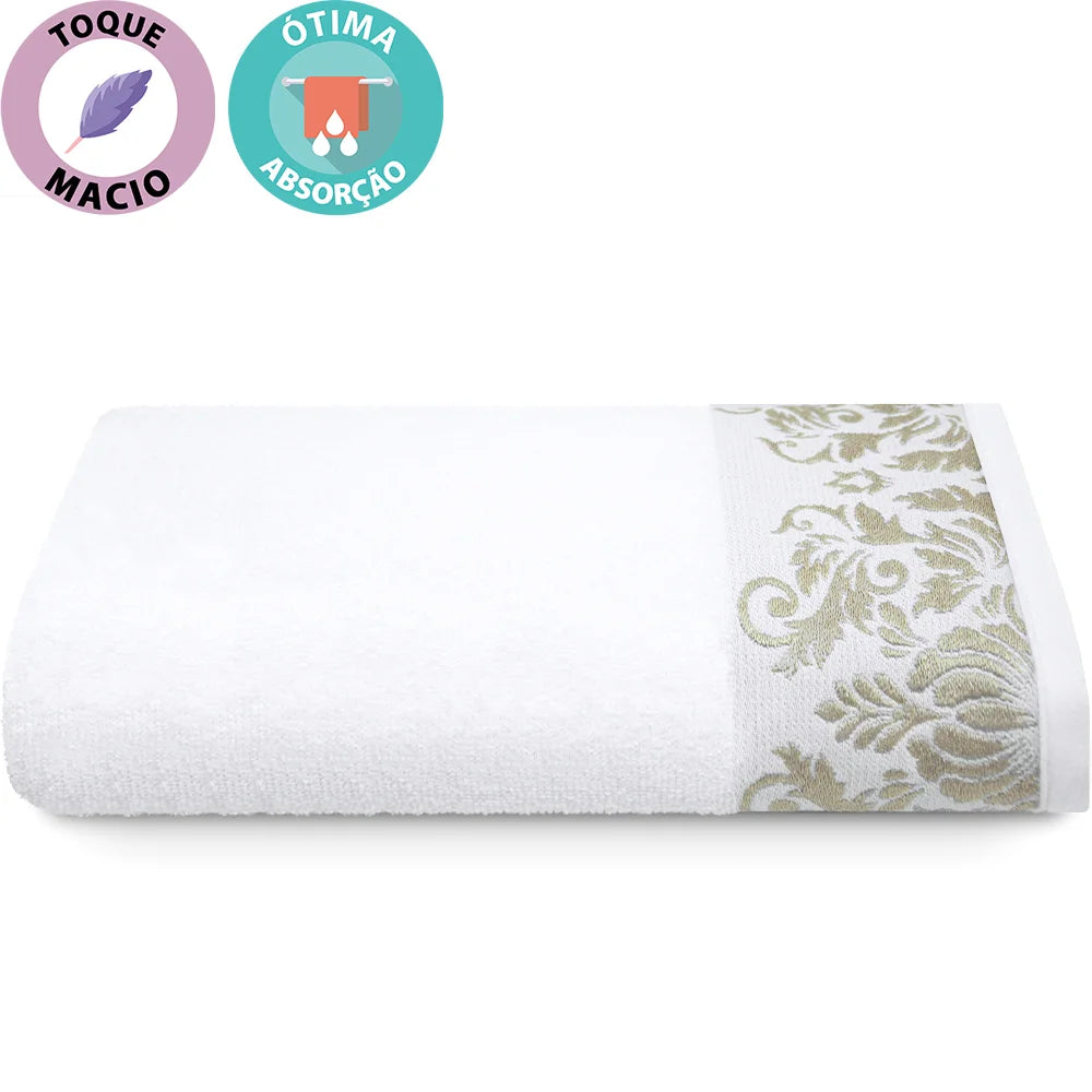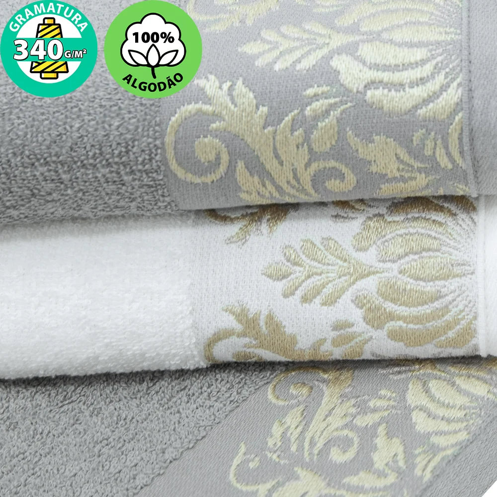 🛁 Conforto Premium: Fios 100% algodão garantem toque macio e excelente absorção de água para uma secagem confortável e eficiente.