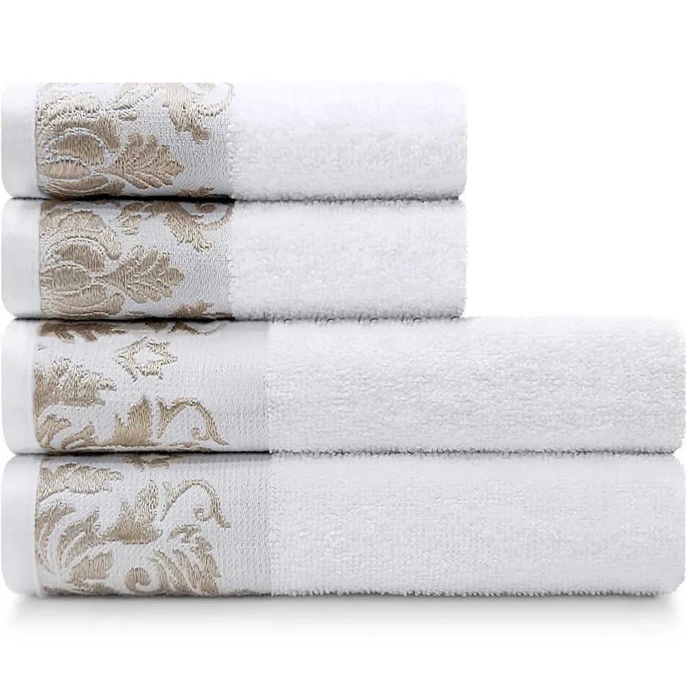 📏 Tamanhos Ideais: Toalhas de banho espaçosas para envolver o corpo com conforto, e toalhas de rosto práticas para o dia a dia.