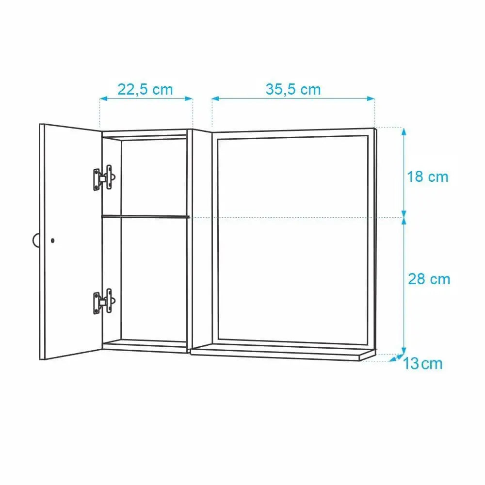Dimensões do Armário: 58 cm (largura) x 46 cm (altura) x 13 cm (profundidade)